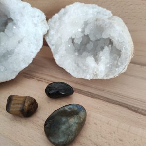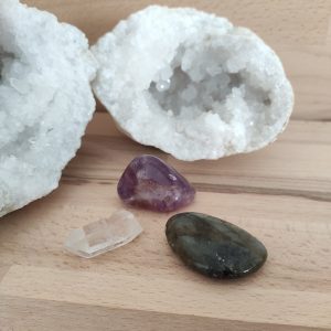 Depuis, j’ai compris que les « cailloux magiques » (comme j’aime les appeler) me parlaient à l’oreille et dans le cœur. Et c’est ainsi que sont créés tous mes bijoux : par canalisation. En résumé, je pense à une thématique, un mot, une période de vie et les pierres s’alignent.